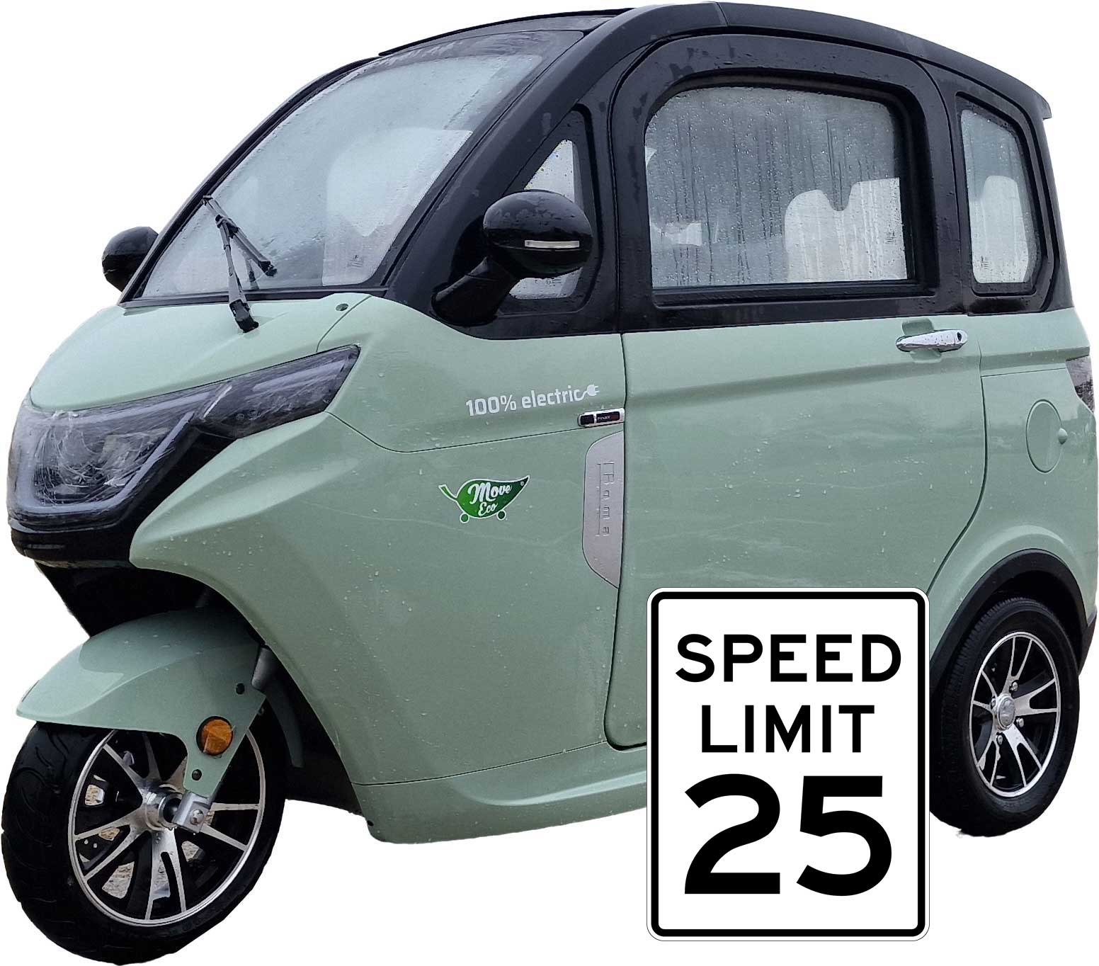 Produktinformationen "MoveEco MicroCar Kabinenroller 25km/h XR2E Mokick Version 2 Personen Grün-Schwarz 3 Jahre Gewährleistung Führerscheinfrei für die Generation 59+"