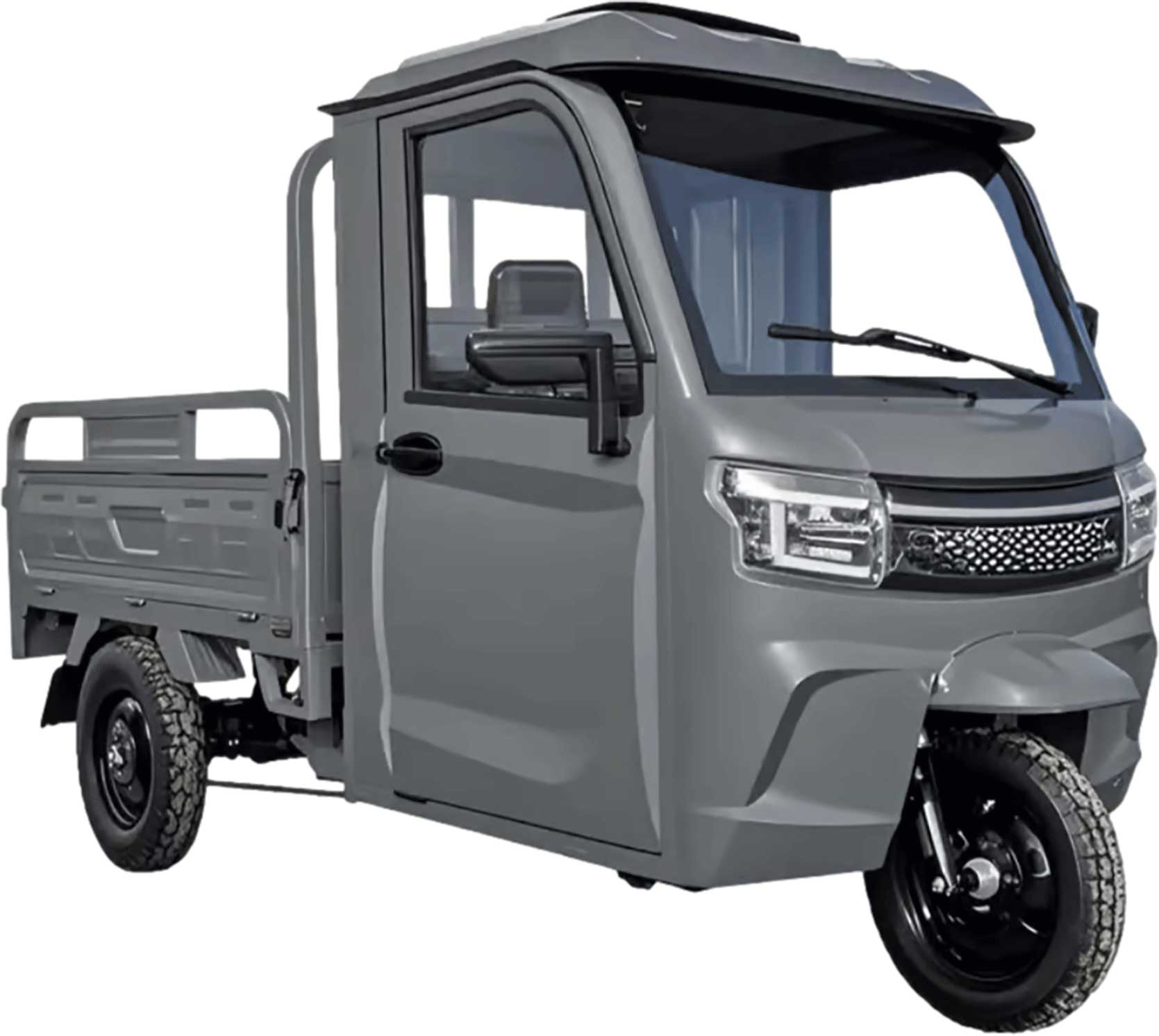 RocknBikes KH1 Grau 25km/h Version Elektro-Dreirad mit Kabine und manueller Kippmulde mit Straßenzulassung Akku 72V58Ah